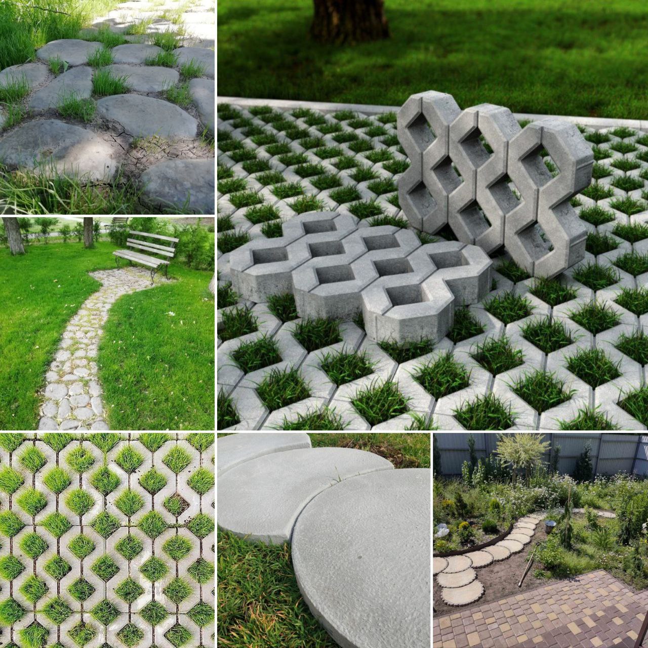 Круглые и полукруглые плиты: Создают эффект парящих камней на траве.